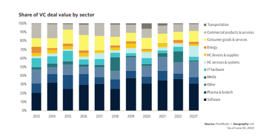 The first half of 2023 saw a decrease in UK venture capital (VC) deal value compared to the same period in 2022, aligning with the overall trend seen across Europe. However, there was an increase in Q2 2023, giving hope for potential recovery in the rest of the year.